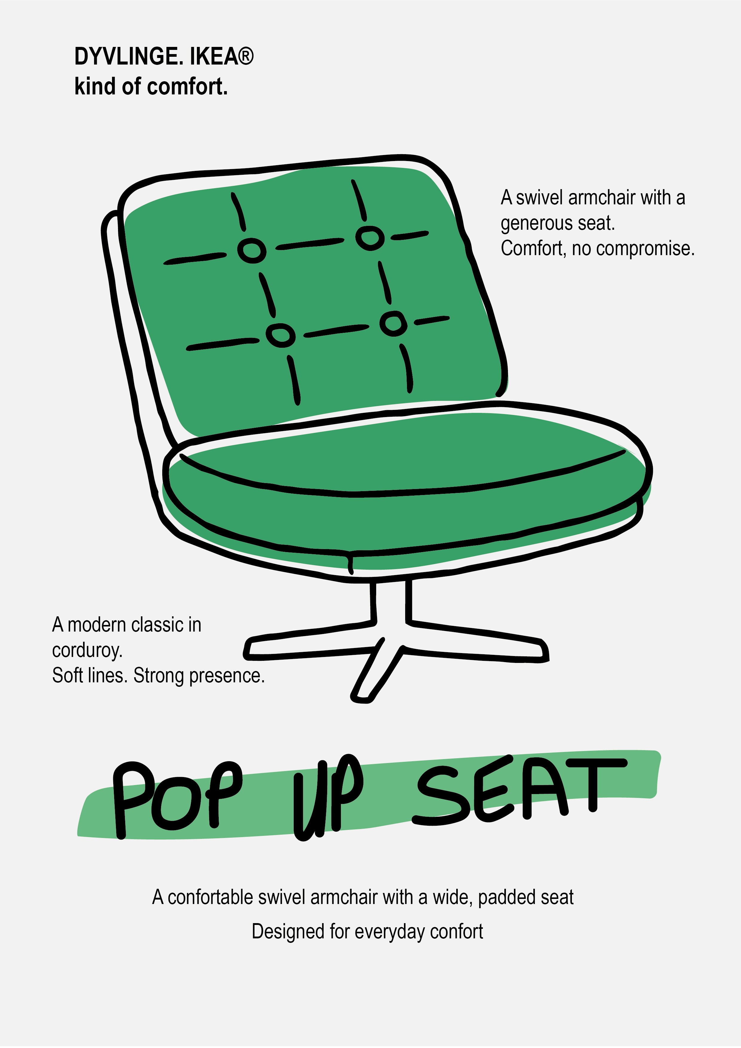 Pour ce poster, j’ai voulu réinterpréter le DIVLIGE en le sortant de son cadre commercial pour en faire une véritable pièce graphique. L’idée n’était pas de reproduire un visuel produit classique, mais de transformer ce fauteuil en illustration, comme un hommage personnel à un objet du quotidien devenu presque iconique.